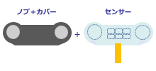 この方式は標準パターンのタッチセンサー上で駆動できますが、底面の回転電極があるため接着面積を確保するためにノブが大型化してしまうという課題があります。