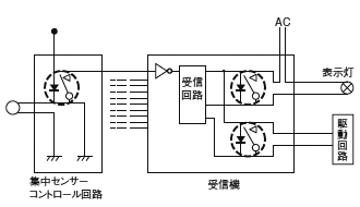 警報用出力インターフェイス:出力として DC・AC を自由に使用でき、高負荷電圧まで対応可能です。